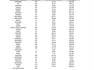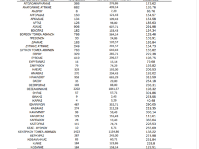 Επιπλέον, 42 περιοχές καταγράφουν τριψήφιο αριθμό κρουσμάτων.