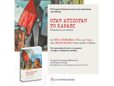 Απόψε Τρίτη 15 Φεβρουαρίου 2022 στις 19.00 παρουσιάζεται από την Σύγχρονη Εποχή το βιβλίο με τίτλο «Όταν χτιζόταν το καράβι» του Στέφανου Λουκά που κυκλοφόρησε τον Μάρτιο του 2021. Την παρουσίαση στην εκδήλωση που θα φιλοξενηθεί στην Αγορά Αργύρη, στην οδό Αγίου Ανδρέου 12 και Ζαίμη, στην Πάτρα θα κάνει ο ίδιος ο συγγραφέας.