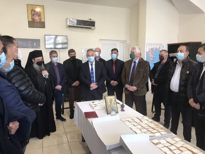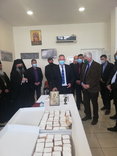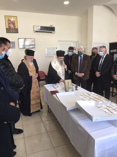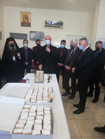 Την Βασιλόπιττα του Συλλόγου «Άγιος Ταξιάρχης» Κάτω Ἀχαΐας και της Ανοιχτής Κοινότητος Έρευνας Πληροφόρησης & Πολιτισμού Πάτρα Ζώνη 14-Αreα 14 , ευλόγησε ο σεβασμιότατος Μητροπολίτης Πατρών κ.κ. Χρυσόστομος, την περασμένη Κυριακή 13.2.2022 στα Γραφεία του Συλλόγου, στην Κάτω Ἀχαΐα, μαζί με τον Αρχιερατικό Επίτροπο Δύμης και Προϊστάμενο της Ἐνορίας Τιμίου Προδρόμου Κάτω Αχαΐας Πρωτοπρεσβύτερο π. Απόστολο Δημητρόπουλο.