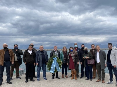 Διακόσια χρόνια συμπληρώθηκαν χτες Κυριακή από την ιστορική Ναυμαχία της Πάτρας και η Δ.Ε.Ε.Π. Ν.Δ. Αχαΐας τίμησε την μνήμη των αγωνιστών. Το πρωί της Κυριακής αντιπροσωπεία της Δ.Ε.Ε.Π. με επικεφαλής τον Πρόεδρο της κ. Αντώνη Κουνάβη βρέθηκαν στο λιμενοβραχίονα της Πάτρας όπου ο Πρόεδρος έριξε στην θάλασσα ένα δάφνινο στεφάνι αποτίοντας την οφειλόμενη τιμή.