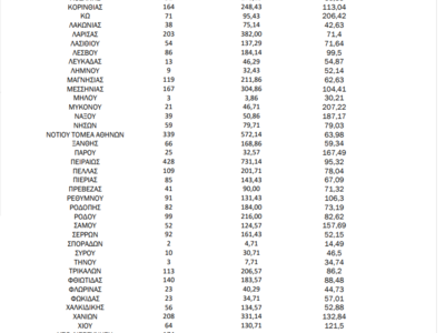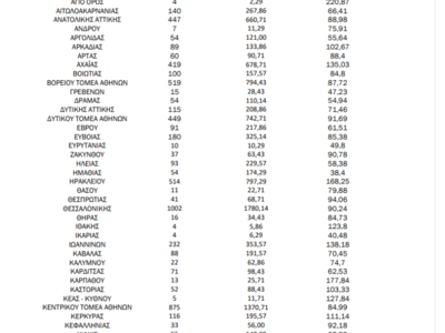 Την ίδια στιγμή 15 ακόμα περιοχές καταγράφουν τριψήφιο αριθμό κρουσμάτων.
