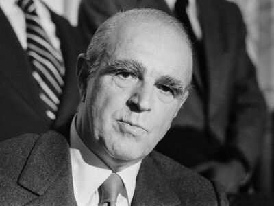 Στη φωτ. ο Ευάγγελος Παπανούτσος, Εκπρόσωπος της Ενώσεως Κέντρου.