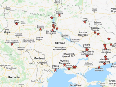*Οπως διακρίνεται σε χάρτη του BNO οι ρωσικές δυνάμεις - υποβοηθούμενες στα βόρεια και από τη Λευκορωσία, όπως καταγγέλλει η ουκρανική συνοροφυλακή - επιτέθηκαν μέχρι στιγμής σε 30 περιοχές της Ουκρανίας.