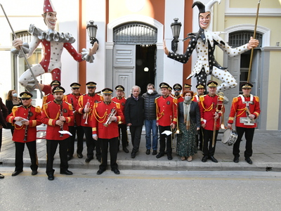 Η Μπάντα του Δήμου στις 11.30 παιάνισε καρναβαλική μουσική στους δρόμους της πόλης και παρουσίασε μουσικό δρώμενο μπροστά από το Δημαρχείο.