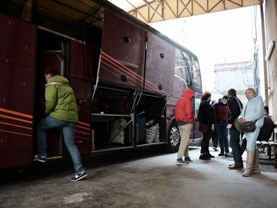 Στις 12.30 το μεσημέρι, το πρώτο λεωφορείο με 35 επιβάτες ξεκίνησε από το Μεταξουργείο με τελικό προορισμό το Κίεβο. Ανάμεσα τους βρίσκονται Ουκρανοί πολίτες που μένουν μόνιμα στη χώρα μας και θέλουν να βρεθούν κοντά στους δικούς τους ανθρώπους αλλά και εθελοντές οι οποίοι θέλουν να καταταγούν στον ουκρανικό στρατό και να πολεμήσουν.