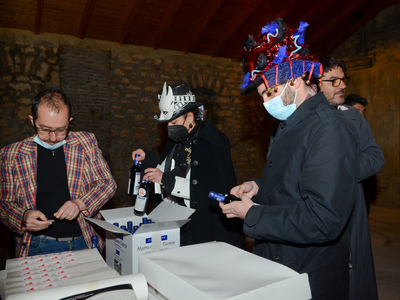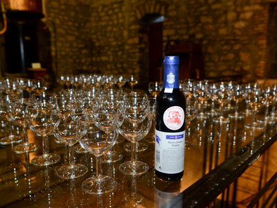 Στην εκδήλωση στην Achaia Clauss τα μέλη των πληρωμάτων πήραν αριθμημένα μπουκάλια Μαυροδάφνης, προσφορά της Achaia Clauss.