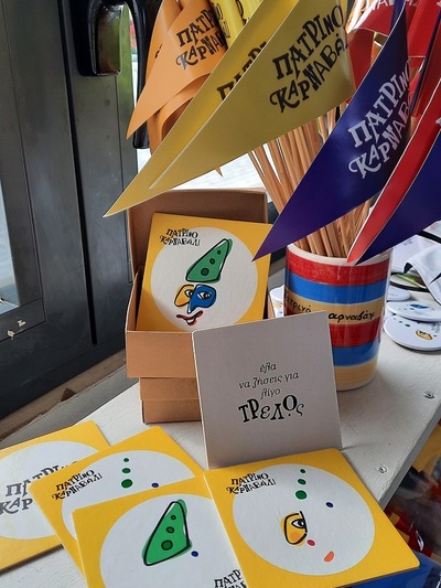 Πρόκειται για τα νέα λάβαρα του Πατρινού Καρναβαλιού που βασίστηκαν σε σχέδιο του Αντώνη Παπαντωνόπουλου & με τη συνεργασία της Μαρίας Μανωλοπούλου, για πάνινες τσάντες, κ.α.