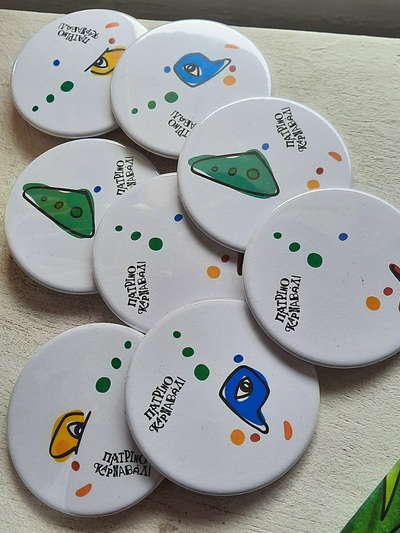 Πρόκειται για τα νέα λάβαρα του Πατρινού Καρναβαλιού, που βασίστηκαν σε σχέδιο του Αντώνη Παπαντωνόπουλου και με τη συνεργασία της Μαρίας Μανωλοπούλου, για πάνινες τσάντες, μπλούζες, κούπες, μάσκες προστασίας, κονκάρδες, μπρελόκ κ.α. που φέρουν το νέο λογότυπο του Πατρινού Καρναβαλιού.