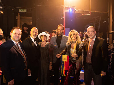 Υπογραμμίζεται πως η βραδιά πραγματοποιήθηκε με τη συνδρομή του τομέα Πολιτισμού και Τουρισμού της Περιφέρειας Δυτικής Ελλάδας που για πρώτη φορά συμπράττει για την ανάδειξη του Πατρινού Καρναβαλιού, υπό τις οδηγίες του Αντιπεριφερειάρχη Πολιτισμού και Τουρισμού, Νίκου Κοροβέση.