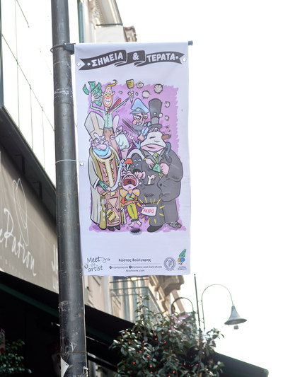 Η έκθεση δίνει χρώμα και αποκριάτικο κλίμα σε κεντρικά σημεία της πόλης προκαλώντας τη ματιά και το ενδιαφέρον των περαστικών στον πολυσύχναστο πεζόδρομο της Ρήγα Φεραίου αλλά και όσων περιμένουν στις στάσεις των λεωφορείων. Έτσι με απλό τρόπο το Καρναβάλι μέσω του σκίτσου εντάσσεται στο αστικό τοπίο και με ζωντάνια και σύγχρονη ματιά συνοδεύει τα στιγμιότυπα της καθημερινότητάς μας στους δρόμους.