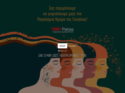 Με αφορμή την Παγκόσμια Ημέρα της Γυναίκας, το TEDxPatras δίνει βήμα στη γυναικεία δυναμική, με τη διοργάνωση της συνάντησης με τίτλο “Women's Empowerment Gathering: #BreaktheBias”, αυτό το Σάββατο 12 Μαρτίου 2022, στις 17:00, στο Θέατρο Όροφως στην Όθωνος Αμαλίας 112, στην Πάτρα (www.orofws.gr).