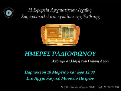 Την Παρασκευή 18/3/2022 στις 12 το μεσημέρι θα εγκαινιαστεί στο νέο Αρχαιολογικό Μουσείο Πατρών η έκθεση «Ημέρες Ραδιοφώνου, από τη Συλλογή Γιάννη Λύρα, η οποία θα διαρκέσει έως και τις 29 Απριλίου 2022.
