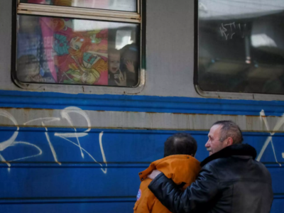 Η στιγμή που ένας 61χρονος πατέρας, ο Βολοντίμιρ, μαζί με τον 23χρονο γιο του, τον Γιαροσλάβ, αποχαιρετούν την οικογένειά τους σε έναν σταθμό τραίνου στο Λβιβ της Ουκρανίας για να σωθούν μακριά από τον πόλεμο, αποτυπώθηκε στον φωτογραφικό φακό του Reuters και συγκλονίζει.