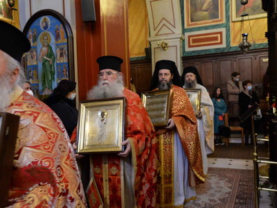 Μετά τό πέρας τῆς Θείας Λειτουργίας πραγματοποιήθηκε ἡ λιτάνευσις τῶν Ἱερῶν Εἰκόνων κατά τήν Ἐκκλησιαστική τάξη.