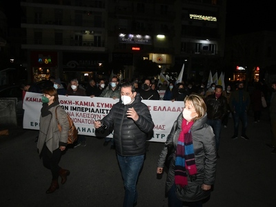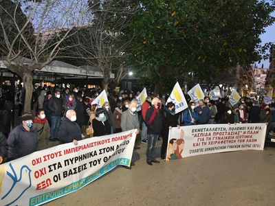 Συνεχίζουμε και κλιμακώνουμε τον αγώνα μας! Δυναμώνουμε την πάλη του λαϊκού κινήματος! Πλαταίνουμε τη δράση μας ώστε να φτάσουμε σε κάθε χώρο δουλειάς και μόρφωσης, σε κάθε γειτονιά! Να ενημερώσουμε τους εργαζόμενους και το λαό της περιοχής! Ο δικαιολογημένος φόβος να γίνει δύναμη καταδίκης της επικίνδυνης πολιτικής της εμπλοκής. Να γίνει δύναμη διεκδίκησης για: