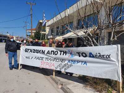 Οι οργανώσεις μελών Αιγίου, Διακοφτού και Ακράτας του ΣΥΡΙΖΑ - ΠΣ, πραγματοποίησαν διαμαρτυρία έξω από τα γραφεία της ΔΕΗ Αιγίου, την Τρίτη 15 Μαρτίου 2022, για την ακρίβεια που πλήττει τα νοικοκυριά, τους εμπόρους, τους αγρότες και μικρομεσαίους στο ηλεκτρικό ρεύμα, τα καύσιμα και βασικά προϊόντα διατροφής.
