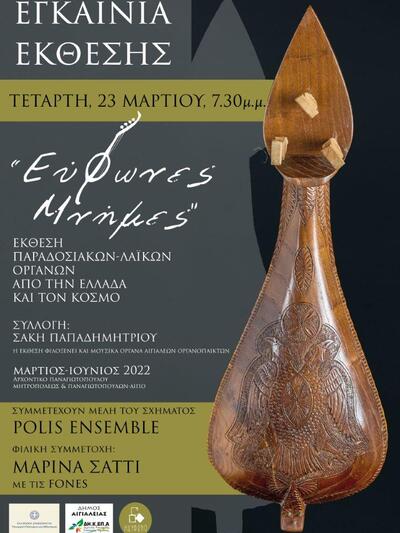 Η Δημοτική Κοινωφελής Επιχείρηση Αιγιαλείας και ο Δήμος Αιγιαλείας παρουσιάζουν μια ιδιαίτερη έκθεση για τον μουσικό πολιτισμό, στο Αρχοντικό Παναγιωτόπουλου στην πόλη του Αιγίου. Πρόκειται για την έκθεση παραδοσιακών και λαϊκών οργάνων από την Ελλάδα και τον κόσμο με τίτλο «Εύφωνες μνήμες», με καλλιτεχνικό και εκπαιδευτικό περιεχόμενο, η οποία πραγματοποιείται στο πλαίσιο της συμπλήρωσης 100 ετών από τη Μικρασιατική καταστροφή του 1922.