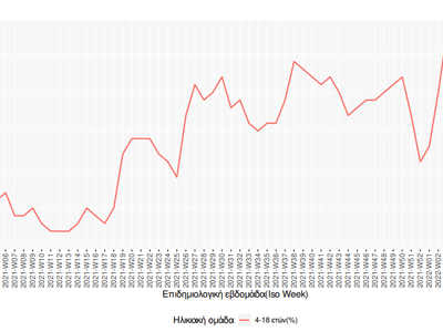 Την εβδομάδα 07 Μαρτίου 2022 - 13 Μαρτίου 2022 (2022-W10), το σύνολο των ασθενών ηλικίας 4-18 ετών είναι 35.275, αποτελώντας το 27% (-10% από την προηγούμενη εβδομάδα) στο σύνολο των κρουσμάτων (Iso Week 10).