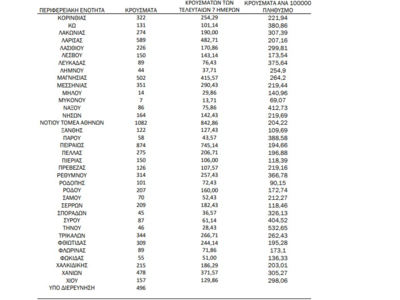 55 νεκροί και 354 διασωληνωμένοι - 1.623 στη Δυτική Ελλάδα