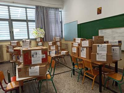 Ο κ Ροδόπούλος απάντησε στις ερωτήσεις των μαθητών για τη δραματική κατάσταση που ζουν οι συμμαθητές τους στην Ουκρανία και του ζήτησαν να τους διαβιβάσει μαζί με τα δέματα τα γραπτά τους μηνύματα