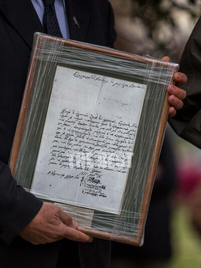 201 χρόνια μετά π Ανδρέας Ζαΐμης διάβασε, από το πρωτότυπο έγγραφο, που ανήκει στην οικογένεια του, την Διακήρυξη που είχε υπογράψει, μαζί με τον Παλαιών Πατρών Γερμανό και προκρίτους, ο προπάππος του. Η διακήρυξη είχε επιδοθεί στον τότε Πρόξενο της Μεγάλης Βρετανίας στην Πάτρα, Γκρην.