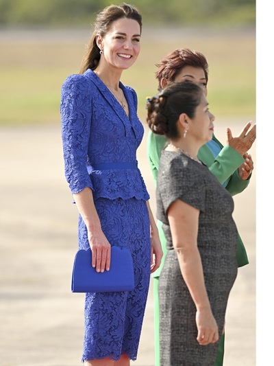 Σε εξωτικό προορισμό, πολύ ευδιάθετοι, ο πρίγκιπας Γουίλιαμ και η δούκισσα του Κέμπριτζ Κέιτ Μίντλετον. Βρέθηκαν στη Μπελίζ της Καραιβικής με εκείνη να κάνει μια άκρως αστραφτερή εμφάνιση, που λάτρεψαν τα φλας. Η Daily Mail εγκωμίασε μάλιστα το «ασύγκριτο γούστο» της Κέιτ και ο Γουίλιαμ ήταν πιο ιπποτικός από ποτέ. Το σχετικό δημοσίευμα που έγινε και πρώτο θέμα είχε τίτλο «Τhe belle of Belize». Το λαμπερό μάξι φόρεμα που εντυπωσίασε ήταν στο έντονο ροζ της μόδας, μεταλιζέ, σε στενή γραμμή, με κοντά κλος μανίκια. Προερχόταν από το πολύ γνωστό και super trendy βρετανικό label Τhe Vampire’s Wife, με σχεδιάστρια τη σύζυγο του ροκά Νικ Κέιβ, Σούζι και αισθητική γοτθικής θηλυκότητας. Ένα αντίστοιχο σχέδιο σε μίντι μήκος και πράσινο χρώμα είχε φορέσει η Κέιτ πριν δυο χρόνια στο Δουβλίνο. Η τωρινή hot pink εκδοχή κοστίζει σχεδόν 3000 ευρώ και υπογράμμισε δεόντως την άψογη σιλουέτα της Κέιτ. Τα αξεσουάρ που επέλεξε η δούκισσα ήταν γοβάκια Jimmy Choo, σκουλαρίκια με ημιπολύτιμες πέτρες του ασιατικού brand Οnitaa και παραδοσιακό τσαντάκι της περιοχής. Το outfit ήταν ειδικά διαλεγμένο, για να γιορταστούν τα 70 χρόνια της βασίλισσας Ελισάβετ στο θρόνο και να τιμηθεί η ιστορία των αποικιακών δεσμών με την Κοινοπολιτεία. H ειδική εκδήλωση με αφορμή το The Queen's Platinum Jubilee έγινε σε περιοχή αρχαιολογικού ενδιαφέροντος με ερείπια των Μάγια.