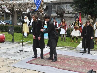 Στο πλαίσιο τα εκδήλωσης, μαθητές της δραματικής σχολής του ΔΗΠΕΘΕ Πάτρας, παρουσίασαν θεατρικό δρώμενο για τη ζωή και τη δράση του Πατρινού αγωνιστή Παναγιώτη Καρατζά. Στην εκδήλωση συμμετείχαν επίσης, η Μπάντα του δήμου και ως παραστάτες, μέλη του χορευτικού από τον Πολιτιστικό Οργανισμό και του Σκοπευτικού Συλλόγου Παραδοσιακών Όπλων Πάτρας.