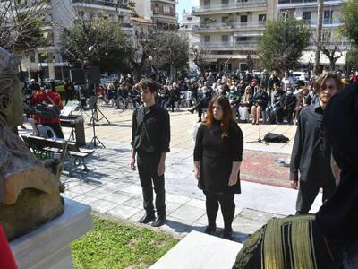 Η πλατεία Ομονοίας της Πάτρας, αποτέλεσε το μεσημέρι της Τετάρτης 23 Μαρτίου 2022, το επίκεντρο των εκδηλώσεων που διοργανώνει φέτος ο Δήμος και ο Πολιτιστικός του Οργανισμός για την επέτειο της 25ης Μαρτίου 1821.