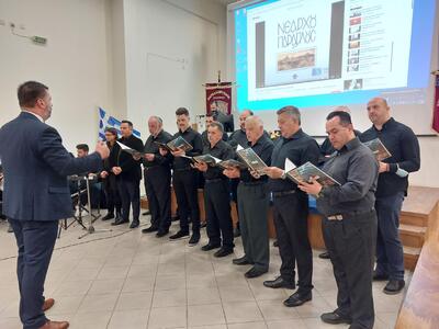 Την εκδήλωση "ανοιξε " με επετειακά τραγούδια η χορωδία Βυζαντινός Χορός υπό την διεύθυνση του κ Σπύρου Σκιαδαρέση ,καθηγητή θεολόγου ΜΑ th Λαμπαδάριου του Νέου Ι Ν Αγίου Ανδρέου και συνόδευσε η ορχήστρα του κ Πλώτα όπου με το κλαρίνο του μας ταξίδεψε μελωδικά.