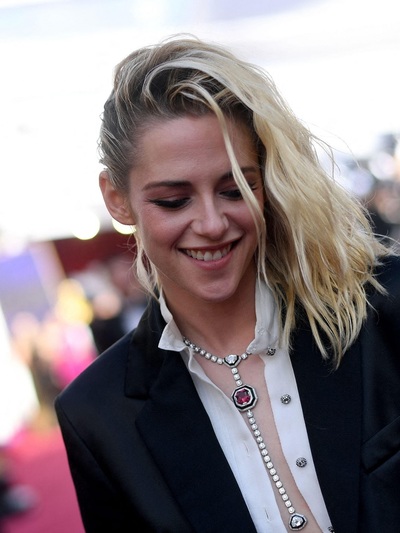 Η αντισυμβατικά πανέμορφη Κρίστεν Στιούαρτ φόρεσε το κολιέ- γραβάτα Ganse Noire Spinelle της σειράς κοσμημάτων Chanel με όνυχα, ρουμπίνι και διαμάντια με boho διάθεση.