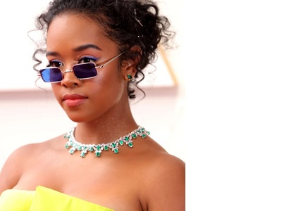 Η τραγουδίστρια HER επέλεξε Chopard high-jewelry, κολιέ με 49.24 καράτια σε σμαράγδια και 62.15 καράτια σε λευκά διαμάντια αλλά και το δαχτυλίδι της ήταν πελώριο με πράσινη τουρμαλίνα.
