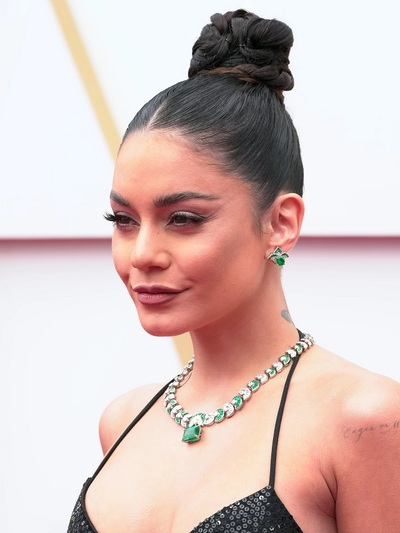 Η Βανέσα Χάντζενς φόρεσε κολιέ Bulgari με πετράδια 23 καρατίων και ασορτί σκουλαρίκια.