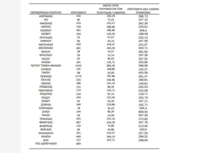 Οι νέοι θάνατοι ασθενών με COVID-19 είναι 49, ενώ από την έναρξη της επιδημίας έχουν καταγραφεί συνολικά 27.392 θάνατοι. 3 Το 95.3% είχε υποκείμενο νόσημα ή/και ηλικία 70 ετών και άνω.