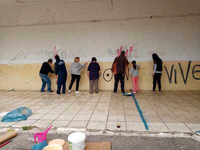 Το υπόστεγο του 24ου Δημοτικού Σχολείου Πάτρας, στην οδό Ανθείας στα Ζαρουχλέικα, άλλαξε όψη το Σάββατο (2/40, με την βοήθεια εθελοντών από το εκπαιδευτικό προσωπικό, παιδιά και γονείς και με την πολύτιμη βοήθεια και καθοδήγηση του κ. Πελεκούδα από το Δήμο Πατρέων, που προμήθευσε τα χρώματα στους εθελοντές.