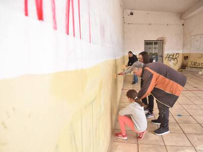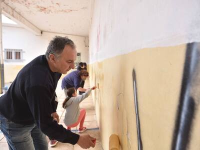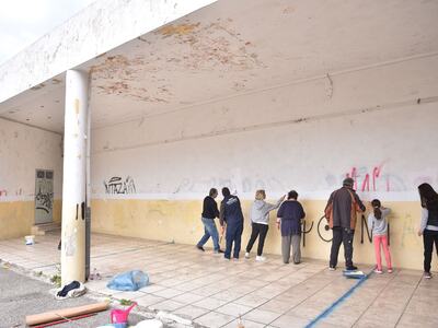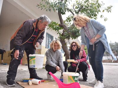 Εκπαιδευτικό προσωπικό, παιδιά και η Δημοτική Αρχή που προμήθευσε χρώματα και τα απαραίτητα εργαλεία, προχώρησαν στο βάψιμο και την ανανέωση του στεγάστρου στο 24ο Δημοτικό Σχολείο Πάτρας, στην οδό Ανθείας στα Ζαρουχλέικα, το πρωί του περασμένου Σαββάτου, αναφέρει με ανακοίνωσή του ο Δήμος.