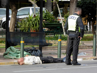 Δίπλα του άνδρας τον ΕΚΑΒ, περιμένει ασθενοφόρο να τον περισυλλέξει
