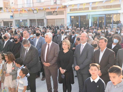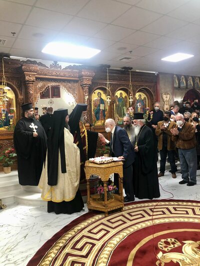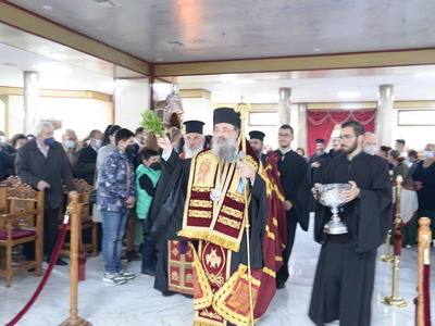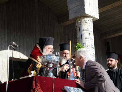Τόν ἁγιασμό ἐτέλεσε ὁ Σεβασμιώτατος Μητροπολίτης Πατρῶν κ.κ. Χρυσόστομος, ὁ ὁποῖος ἐν συνεχείᾳ ἐχοροστάτησε στόν πρῶτο πανηγυρικό Ἑσπερινό στόν Ἱερό Ναό.