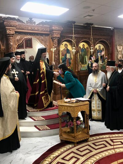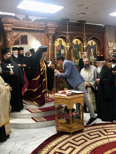 Στούς εὐεργέτας γιά τήν ἀνέγερση τοῦ μελοπρεποῦς Ναοῦ, ἐξέφρασε τίς θερμές εὐχαριστίες καί ἐνεχείρισε θερμόν εὐεργετήριον γράμμα.