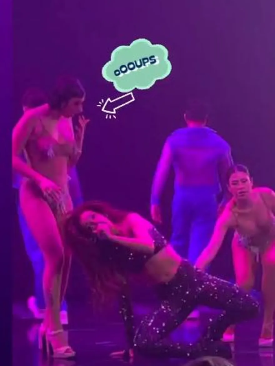 Έπεσε και δυο χορεύτριες έσπευσαν να τη βοηθήσουν, όμως εκείνη δεν σηκώθηκε και συνέχισε να χόρευε όσο ήταν καταγή.