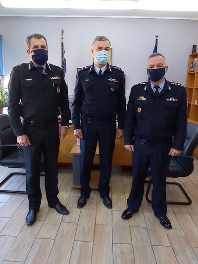 Ο Περιφερειακός Διοικητής της Πυροσβεστικής Υπηρεσίας Δυτικής Ελλάδας, Αρχιπύραρχος Χριστόφορος Μπόκας και ο Διοικητής Πυροσβεστικών Υπηρεσιών Αχαΐας, Πύραρχος Βασίλειος Σολδάτος, πραγματοποίησαν εθιμοτυπική επίσκεψη τη Δευτέρα 11-4-2022 το πρωί, τη Διεύθυνση Αστυνομίας Αχαΐας.