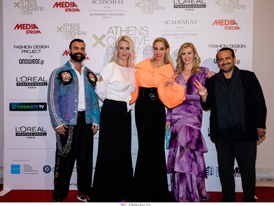 H βραδιά ξεκίνησε με το installation του Λάκη Γαβαλά «Riding with grace, Riding in fashion» που μετέφερε μοτοσυκλέτες στο εξωτερικό χώρο του Ζάππειου. Ακολούθησε το show της Daphne Valente «Midsummer Night’s Dream» και του οίκου Kathy Heyndels. Ανάμεσα στους παρευρισκόμενους ήταν η αντιδήμαρχος Αλληλεγγύης και Κοινωνίας των Πολιτών, Κατερίνα Γκαγκάκη η οποία έκανε ένα σύντομο χαιρετισμό όπως και η προέδρος του Σωματείου Ελλήνων σχεδιαστών, Ορσαλία Παρθένη, και ο αντιπρόεδρος του Σωματείου Βασίλης Ζούλιας, που μίλησαν για την σπουδαιότητα της Εβδομάδας Μόδας. Το διεθνών προδιαγραφών, υψηλής αισθητικής κι ευρηματικής σκηνοθεσίας θέαμα παρουσίασης των κοσμημάτων και του αρώματος Doukissa Nomikou (www.doukissanomikou.com) ήταν πάντως το «κλου» της έναρξης. Η εκθαμβωτική Δούκισσα με το εντυπωσιακό outfit Celia Kritharioti, παπούτσια Envie Shoes και τα μοναδικά κοσμήματα Doukissa Nomikou (www.doukissanomikou.com) ενθουσίασε κοινό, ειδικούς και ΜΜΕ, αποτελώντας το κύριο θέμα συζήτησης της πρώτης ημέρας. Μοντέλα σε υπερυψωμένα βάθρα και με δημιουργικές προβολές σε οθόνες καταχειροκροτήθηκαν. Τα κοσμήματα, 100% χειροποίητα, φτιαγμένα στην Ελλάδα, υμνούν τη γυναίκα του σήμερα. Το μεθυστικό άρωμα έχει διάρκεια κι ένταση, στο οποίο κυριαρχούν γλυκές νότες που δένουν αρμονικά με νότες καρδιάς από λαχταριστή τραγανή καραμέλα και ζεστές νότες βανίλιας. Τα φλας άστραψαν και για τους επώνμυμους καλεσμένους όπως η Μαίρη Φιξ, η Καλλιόπη Καρβούνη, η Μάγκι Χαραλαμπίδου, όμως η μαμά της Δούκισσας ήταν που πολυσυζητήθηκε, καθώς εμφανέστατα η παρουσιάστρια κληρονόμησε την ομορφιά της.