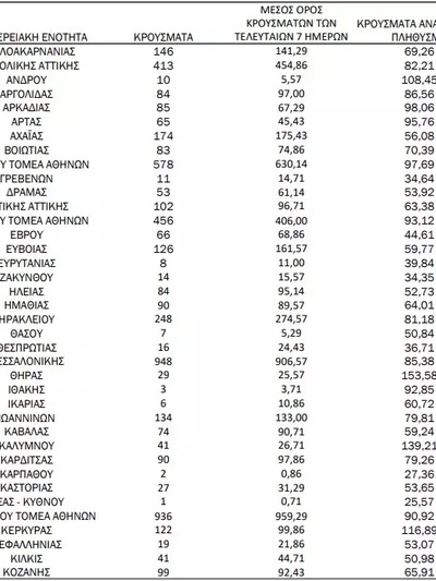 Ειδικότερα, στην Αττική τα κρούσματα κατανέμονται ως εξής: