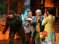Στο ευφάνταστο σκηνικό της Μαρίας Βασιλάκη, και τους λειτουργικούς φωτισμούς της Κατερίνας Μαραγκουδάκη οι θεατές απόλαυσαν τους ηθοποιούς Διονύση Βούλτσο , Ελένη Καλαντζοπούλου, Γιώργο Κομνηνόγλου και στον ρόλο του Γορίλα τον Ηλία Μανιατόπουλο, που απέδωσαν με μοναδικό τρόπο την σύγκρουση δύο κόσμων του πνευματικού και του ζωώδη.