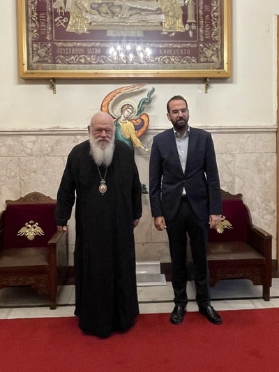 Τον Μακαριότατο Αρχιεπίσκοπο Αθηνών και πάσης Ελλάδος κ. Ιερώνυμο επισκέφθηκε το πρωί της Μεγάλης Δευτέρας 18 Απριλίου 2022 ο Περιφερειάρχης Δυτικής Ελλάδος Νεκτάριος Φαρμάκης.