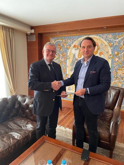 Ο Προέδρος της Δ.Ε.Ε.Π. Ν.Δ Αχαΐας Αντώνης Κουνάβης παρέδωσε στον Πρέσβη της Ουκρανίας κ. Sergii Shutenko τραπεζική επιταγή με χρήματα που συγκεντρώθηκαν από εκδήλωση στην Πάτρα