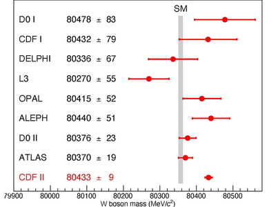 Πρόσφατα, ερευνητές από το Fermi National Accelerator Laboratory (Fermilab) ανακοίνωσαν πως, έπειτα από δέκα χρόνια ερευνών, κατάφεραν να επιτύχουν την πιο ακριβή, έως σήμερα, μέτρηση της μάζας του μποζονίου W. Αυτό που είναι αξιοσημείωτο σχετικά με τη συγκεκριμένη έρευνα είναι πως η μάζα προέκυψε μεγαλύτερη από αυτή που προβλέπει το καθιερωμένο πρότυπο για τα συγκεκριμένα στοιχειώδη σωμάτια.