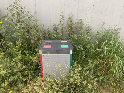 - Έναν κάδο συγκέντρωσης και διαλογής ανακυκλώσιμων υλικών, τοποθετημένο σε λάθος σημείο, με λάθος τρόπο.