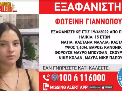 Όπως ανακοίνωσε το Χαμόγελο του Παιδιού, πιθανόν η 15χρονη Φωτεινή Γιαννοπούλου από το Περιστέρι «να είναι εγκλωβισμένη σε μία επικίνδυνη κατάσταση από την οποία δεν μπορεί να διαφύγει»!