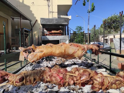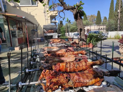 Κυριακή του Πάσχα όπως παλιά όχι μόνο στα χωριά φέτος αλλά και στο κέντρο της Πάτρας. Στήθηκαν παντού ψησταριές και από νωρίς το πρωί μέχρι αργά το απόγευμα το ... γύρισμα του οβελία και το γλέντι κρατούσε για τα καλά.