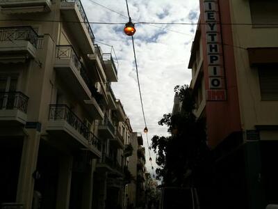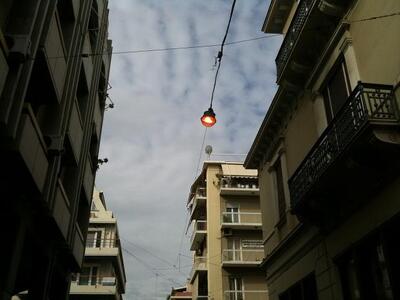Λίγο πριν τις 10 σήμερα το πρωί. Άλλη μια ημέρα, όπως μας είπαν οι καταστηματάρχες της οδού, που ο δημοτικός φωτισμός παρέμεινε ανοιχτός και ποιός ξέρει πόσες ακόμα ώρες θα ήταν σε λειτουργία.